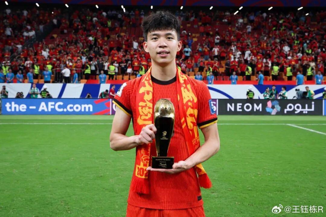 2024年2月,王钰栋获得2023中国金球奖中国金童奖;