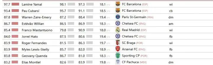 近日,著名足球数据统计机构cies评选了2025年全球最强的200名U20球员,其中有3名中国球员入围。